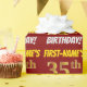 Este design de papel de empacotamento apresenta uma mensagem como "PRIMEIRO NOME É 35º ANIVERSÁRIO!", com o "35º" a ter uma aparência de cor falsa/imitação em forma de ouro, e com o nome e "ANIVERSÁRIO" numa fonte divertida e ousada. O nome pode ser personalizado e o plano de fundo é vermelho. Um papel de embrulho como este poderia talvez ser usado para embrulhar presentes de aniversário que são dados a alguém em comemoração de seus trinta e cinco anos de aniversário. [~Z0000204]