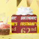 Este design de papel de empacotamento apresenta uma mensagem como "PRIMEIRO NOME DO 62º ANIVERSÁRIO!", com o "62º" a ter uma aparência falsa/imitada de cor dourada, e com o nome e "ANIVERSÁRIO" numa letra divertida e ousada. O nome é personalizável e o fundo é vermelho colorido. Um papel de embrulho como este poderia talvez ser usado para embrulhar presentes de aniversário que são dados a alguém em comemoração do seu sessenta e segundo aniversário. [~Z0000204]