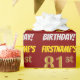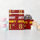 Este design de papel de embrulho apresenta uma mensagem como "PRÓPRIO NOME DE 81ruas DE ANIVERSÁRIO!", com a "81ruas" a ter uma aparência falsa/imitada de cor dourada, e com o nome e "ANIVERSÁRIO" numa letra divertida e ousada. O nome pode ser personalizado, e o fundo tem cor vermelha. Um papel de embrulho como este poderia talvez ser usado no embrulho de presentes de aniversário que são dados a alguém em comemoração de seu oitenta aniversário. [~Z0000204]
