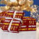 Este design de papel de embrulho apresenta uma mensagem como "PRIMEIRO NOME'S 91rua BIRTHDAY!", com a "91ruas" a ter uma aparência falsa/imitada de cor dourada, e com o nome e "BIRTHDAY" numa letra divertida e ousada. O nome pode ser personalizado e o plano de fundo é vermelho. Um papel de embrulho como este poderia talvez ser usado no embrulho de presentes de aniversário que estão sendo dados a alguém em comemoração de seus 90 anos de primeiro aniversário. [~Z0000204]