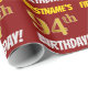 Este design de papel de empacotamento apresenta uma mensagem como "FIRSTNAME'S 94th BIRTHDAY!", com o "94º" a ter uma aparência de cor falsa/imitada em forma de ouro, e com o nome e "BIRTHDAY" numa fonte divertida e ousada. O nome é personalizável e o fundo é vermelho colorido. Um papel de embrulho como este poderia talvez ser usado no embrulho de presentes de aniversário que estão sendo dados a alguém em comemoração de seu 90º aniversário. [~Z0000204]