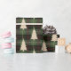 Papel De Presente Vermelho Festivo, Xadrez Verde e Creme e Árvores d