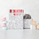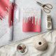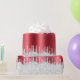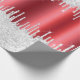 Este invólucro espumante tem uma base vermelha falso metálica, falso, festiva, com gotas de brilho prateado de platina impressa derretendo em ambos os lados.