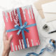 Papel De Presente Vermelho Metálico Natal e Lixo de Prata