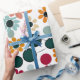 Este trabalho de arte é um padrão animado e colorido que apresenta um conjunto de flores estilizadas e formas circulares espalhadas sobre um fundo branco. A design é caracterizada por uma mistura de tons quentes, como laranja, vermelho e amarelo, contrastada com tons mais frios de chel e verde. A composição tem uma sensação lúdica e dinâmica, com círculos e pétalas sobrepostas criando senso de movimento e ritmo. Os contornos ousados dos elementos acrescentam um toque de modernidade ao tom floral, fazer-o um ajustado perfeito para a decoração contemporânea ou design têxtil.