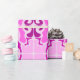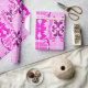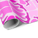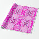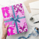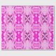 Roll of decorative wrapping paper featuring a vibrant pink and purple abstract pattern, with symmetrical floral and geometric shapes on a light background.