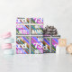 Este divertido design de papel de empacotamento com tema de aniversário apresenta uma mensagem como "FELIZ 73º ANIVERSÁRIO, NOME AQUI!", onde o nome pode ser personalizado. O fundo apresenta um padrão de listras vibrante e multicolorido. O texto da mensagem é branco colorido e tem uma aparência angustiante. Um papel de embrulho como este poderia talvez ser usado para embrulhar presentes ou presentes sendo dados a alguém que comemora seus setenta e três anos. [~Z0000272]