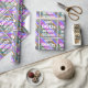 Este divertido design de papel de empacotamento com tema de aniversário apresenta uma mensagem como "FELIZ 96º ANIVERSÁRIO, FIRSTNAME!", onde o nome pode ser personalizado. O fundo apresenta um padrão de listras vibrante e multicolorido. O texto da mensagem é branco colorido e tem uma aparência angustiante. Um papel de embrulho como este poderia talvez ser usado para embrulhar presentes ou presentes sendo dados a alguém que comemora seu 90° aniversário. [~Z0000272]