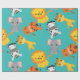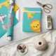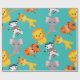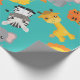 Um safari fofo que envolveu um papel de embrulho com leões, girafas, zebras, tigres e elefantes sobre fundo azul-claro. Excelente para uma festa infantil, peça o seu hoje! Clipart: design Prettygrafik (https://www.etsy.com/shop/Prettygrafikdesign)