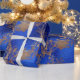 Papel De Presente Vidro Azul Cobalto Vidro Dourado Velho Metálico