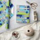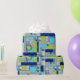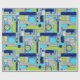 Este papel de embrulho de presente tem um padrão de deco de blocos quadrados em vidro digital manchado. Um design geométrico colorido em cores azul, aquamarina e verde. Um belo papel de embrulho para cobrir seus presentes. Você pode fazer o padrão neste papel de embalagem maior ou menor.
