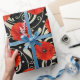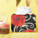 Um interessante contraste entre uma flor real vermelha de papoila e uma decoração floral branca e preta de vidro. florenceK