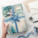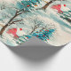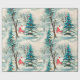 Este papel de embrulho apresenta um padrão clássico, repetindo o padrão de uma cena terrestre de inverno. A design mostra uma paisagem coberta de neve com árvores nuas e um caminho de enrolamento. No centro de cada repetição encontra-se uma vibrante árvore de Natal azul, de pó para neve, decorada com ornamentos laranja e vermelhos. À esquerda, uma pequena casa rosada e rosa com uma chaminé vermelha, fumaça a abanar. Outra casa azul menor é visível no fundo. A cena inteira tem um sentimento suave e nostálgico, que lembra as ilustrações de feriados antigos.