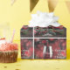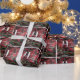 Papel de embrulho perfeito para a pessoa que faz parte da sua lista de presentes de férias que adora vinho, com matizes de vinho tinto, aliados a verde sazonal de folhas sagradas e pinheiro com texto branco e queda de neve; e uma mensagem divertida de: "Sonhando com um Natal de Vinho".