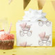 Este presente divertido apresenta carruagems de bebês em tons suaves de rosa com flores.