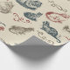 Um padrão de gato vítreo em um fundo bege com curlices. Os gatos são do livro Our Cats by Weir, 1892, cortesia do Projeto Gutenberg.