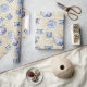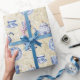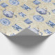 Elegant vintage style blue white teapots, tea cups and plates on antique faded damask background make a lovely and elegant all occasion wrapping paper.