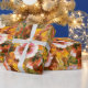 Este papel monótono tropical de embrulho é uma bela maneira de decorar seus presentes! O papel de embrulho com padrão apresenta hibisco, wattle de ouro e pata de canguru. Inclui também flores de gengibre, protea e folhas de eucalipto dólar. Os nativos australianos com aquarelas parecem românticos e naturais em tons de terra.