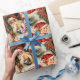Esse papel de embrulho apresenta um tema de natal vintage, com uma representação clássica de Papai Noel no centro, segurando presentes e cercado por um verde festivo. A design inclui galhos de pínus, Holly, e uma garotinha dando a ela um sentimento nostálgico e aconchegante de feriado. O fundo incorpora elementos tradicionais de Natal, como caixas de presentes, verde com pínus cones e fitas vermelhas, contribuindo para uma atmosfera festiva e alegre. A estética global tem um olhar eterno, antiquado, reminiscente dos cartões de natal do 20.
