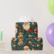 Um padrão de papel de embrulho de Natal inspirado na safra, com um Papai Noel clássico, com uma expressão alegre, cercado por elementos festivos. A design inclui renas com grandes galhadas, enfeites de ouro, presentes envoltos e galhos cada vez verdes colocados contra um fundo de terra escura com estrelas dispersas, acrescentando um toque brilhante e rústico. O estilo de ilustração retrô desenhado à mão captura o encanto nostálgico de uma cena de feriado tradicional, criando um calor e convidando a se sentir perfeito para embrulhar presentes durante a época de Natal.