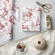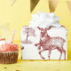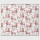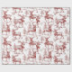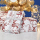 A nostalgic red Christmas gift wrap in vintage toile style, featuring reindeer in scarves with little bells among pine trees in delicate line art. The red on white artwork feels classic and woodland cozy under the tree. Pair with twine, velvet ribbon, or kraft tags for a timeless finish.