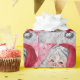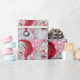 Vintage e adoráveis Papais noeis de Natal embrulhando papel com fundo vermelho e rosa.
