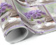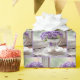 Bando violeta roxa no antigo colar, doily, pela janela de uma fazenda