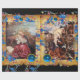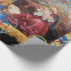 Atmosfera mágica e colorida do Natal pelo pintor alemão Matthias Grunewald , Detalhes do Segundo Estado do Isenheim Altarpart , estilo expressivo e intenso de arte medieval da Europa Central no século 16.Petróleo sobre madeira. Design de Natal elegante, clássico, brilhante e alegre em pergaminho com antigas motins florais florais floridas, safira azul brilhante 3D e pedras vermelhas de rubis.