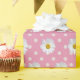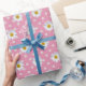 Padrão de margarida branca em bolinhas brancas com fundo rosa.