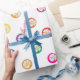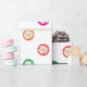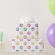 Padrão de bolinhas colorido em fundo branco com margaridas. A cor de fundo pode ser alterada.