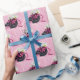 Buquê de margarida em tênis pretos com cadarços cor-de-rosa em fundo de gingham rosa e branco para Baby Girl.