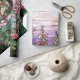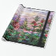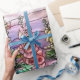 A reprodução floral da janela do vitral lindo de Nouveau Tiffany da arte do vintage descreveu a beleza de um campo dos hollyhocks no tom roxo romântico contra o céu do por do sol está neste papel de papel de embrulho.