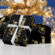 Papel De Presente Vrolijk Kerstfeest Natal Holandês Negro e Dourado