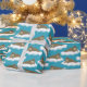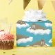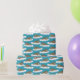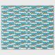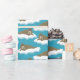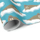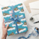 Este papel de embrulho ilustrado tem um padrão repleto de passarelas flutuando em galhos de gelo ou em mantas de gelo. As ilustrações de morsa de estilo realista são colocadas sobre um fundo azul turquesa.