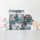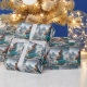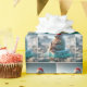 Uma morsa vestindo um Papai Noel que se senta sobre um pequeno chão de gelo cercado por penhascos gelados e água congelada