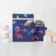 Papel De Presente Watercolor Dinosaur Astronauts In Space Blue