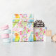 This romantic wrapping paper features hand-painted watercolor lovebirds perched on a flowering branch, surrounded by soft pink and purple blooms beneath a warm sunset sky. Delicate pen details and gentle colors create a beautiful, heartfelt presentation, perfect for weddings, anniversaries, Valentine’s Day, or any gift meant to share love and connection.