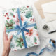 Papel De Presente Watercolor Poinsettias e Berries Christmas