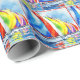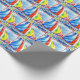 Barcos à vela em uma regata com girinos coloridos correndo num mar calmo, lançando reflexões na água