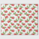 Papel De Presente Watercolor Strawberry Fruit and Flowers