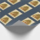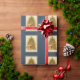 Luxe navy-and-gold Christmas wrap featuring a gloriously unimpressed Maine Coon cat beside a festive tree and present — perfect for pet lovers with style.
