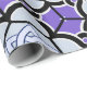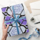 Um belo nó curvelinear com estrelas de Magen David em azul e roxo vai iluminar seus presentes.