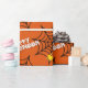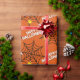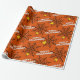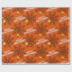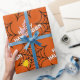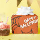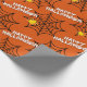 Este fantástico papel de embrulho para o Halloween tem teias de aranha e aranhas sobre um fundo laranja. White Happy Halloween.