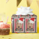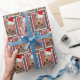 Um terror galês vestindo um chapéu de Natal em fundo listrado e quadro de captura antiquado, o fundo das cinzas escuras pode ser mudado.