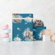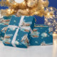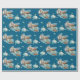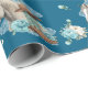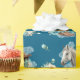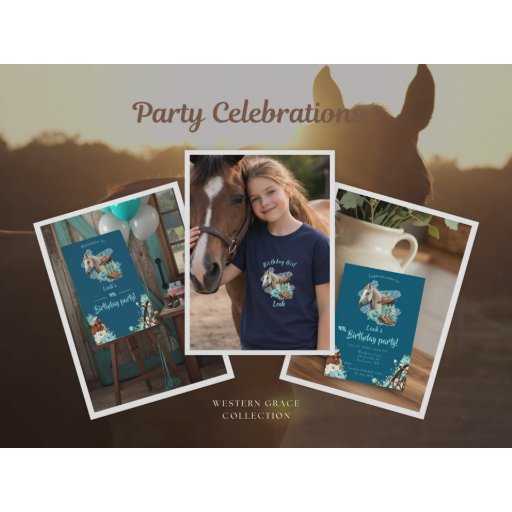 This wrapping paper features a western horse watercolor design with soft floral accents and classic cowgirl elements, including cowgirl boots and a cowgirl hat. Set against a rich navy background with turquoise and neutral tones, it creates an elegant western look that’s perfect for wrapping gifts for a horse birthday party.