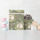 The scene is set in an enchanting forest with a muted, earthy color palette, dominated by soft greens, creamy whites, and touches of dusty rose and pale terracotta.