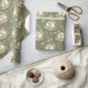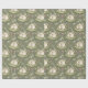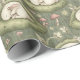 Mushrooms & Flora: Tall, slender mushrooms with pinkish-red caps anchor the pattern. Various whimsical curling vines, stems, and small, pink four-petaled flowers fill the background, which is a soft, deep sage green.