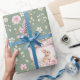 Papel De Presente Whimsical Bunny Teapot Spring Floral Pattern