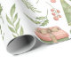 This Christmas wrapping paper features a cheerful watercolor-style pattern filled with festive charm. Scattered across a crisp white background are hand-painted holiday icons: green Christmas trees topped with yellow stars, pink and green gift boxes tied with bows, delicate pink ornaments with circular accents, and sprigs of holly, berries, and assorted foliage. The playful mix of colors and whimsical illustrations creates a lighthearted, joyful design perfect for wrapping gifts with a touch of seasonal sweetness.