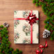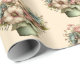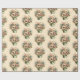 Wrapping paper with a cute image. Blue. pink and cream colored flowers with green leaves. Set inside a green flower pot with a green plaid cloth hanging over the side.